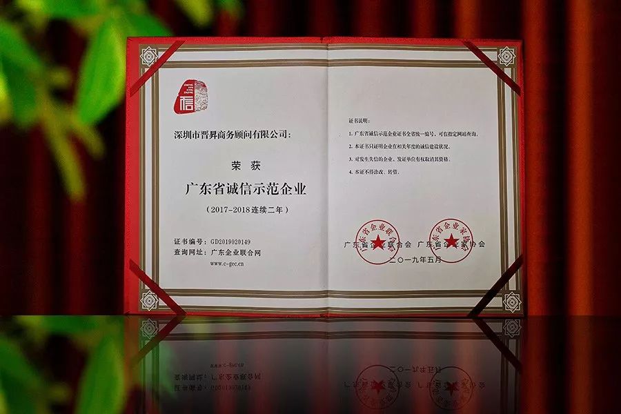 自此榮譽連續(xù)舉辦至今,廣東省誠信示范企業(yè)評選對推動廣東省經(jīng)濟領域誠信建設工作發(fā)揮了積極的作用,具有較高的公信度和廣泛的社會影響力。此次獲獎也是對晉昇國際多年來企業(yè)持續(xù)誠信建設成效的充分認可,亦是晉昇國際強大品牌實力的有力體現(xiàn)。