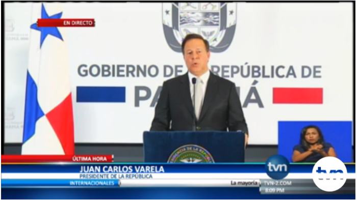 巴拿馬時(shí)間6月12日晚8時(shí),巴拿馬總統(tǒng)胡安·卡洛斯·巴雷拉(Juan Carlos Varela Rodriguez),在國家電視臺(tái)全國新聞聯(lián)播節(jié)目上,正式向全世界宣布:巴拿馬共和國與中華人民共和國建立外交關(guān)系。