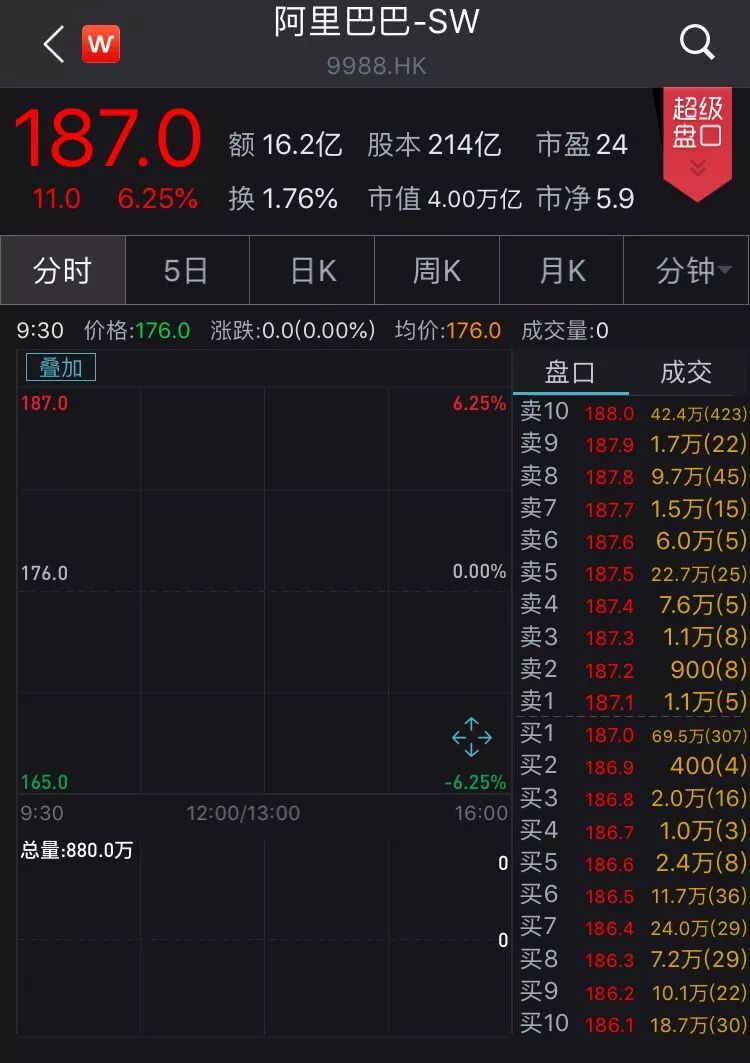 今天,阿里巴巴集團時隔七年后重回港股市場,開盤漲6.25%,報187港元,市值達4萬億港元,取代騰訊成為港股市場新股王。