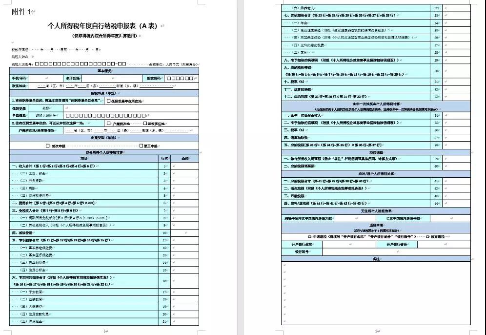 (1)《個(gè)人所得稅年度自行納稅申報(bào)表(A表)》
