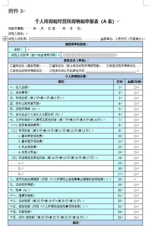 其中,A表還包含簡(jiǎn)易版,此表格不需要填列扣除項(xiàng)目,僅就個(gè)人基本情況、申報(bào)類型、納稅地點(diǎn)、已繳稅額等情況作出說(shuō)明即可。