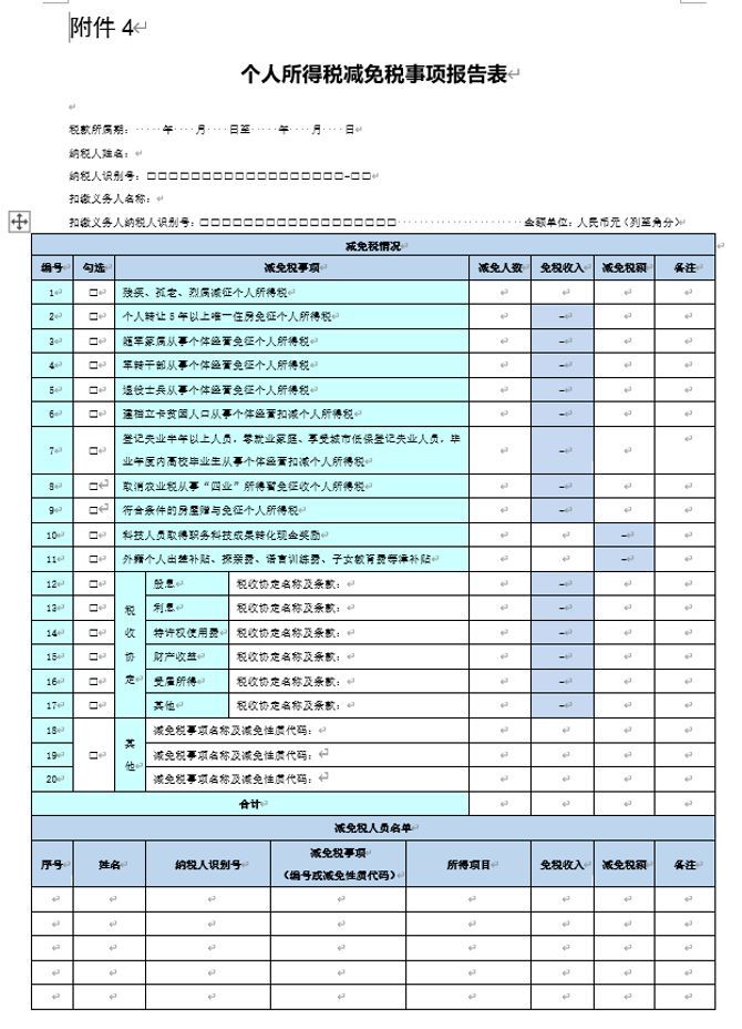 (6)《個(gè)人所得稅減免稅事項(xiàng)報(bào)告表》